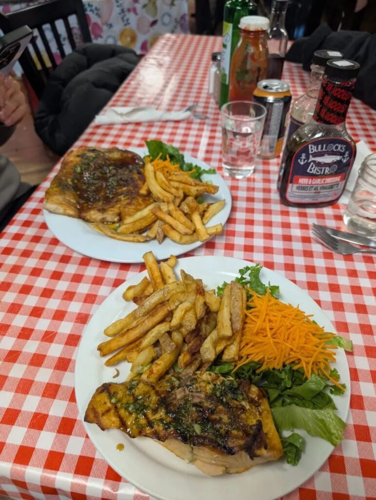 雖然極光如此震撼,但不知為何來到此地的大陸人好像很少。除了因為日本人相信極光下受孕生出來的孩子會運氣爆棚之外,據說是因為最近Netflix上線了一個在加拿大取景的韓劇,也許是因為內地看不了。環顧四周,多是日韓及港台遊客,連帶着這裡也就基本上沒有什麼正經的中餐。既來之則安之,本想嘗試些當地特色,卻發現這片凍土上的吃食實在乏善可陳。北美水牛排嘗起來與普通牛肉並無二致,唯有餘味中透着一絲若有若無的野性騷味;用當地的魚做的煎魚排與炸魚薯條雖不難吃,但印象不強烈,如果不記下來也許很快就會忘掉具體是什麼味道。