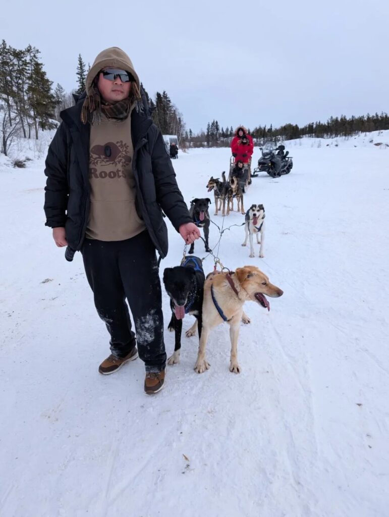 在黃刀,我們不僅看雪,還實實在在地玩了雪。此處不得不提及我的光榮負傷,即右手小拇指外側擦破了皮。這意外源於我最期待的狗拉雪橇。那天清晨,我們造訪了一家擁有上百條雪橇犬的狗場。因「雪橇三傻」名聲在外,我本期待見到成群的薩摩耶、哈士奇及或阿拉斯加,再不濟也該是本土的拉布拉多,可現場一看,全是些形似中華田園犬的短毛雜交犬。真不知它們如何抵禦這極寒。當然更加讓人感到揪心的是這些狗都在瘋狂的嘶吼哀嚎,因為正好有人來各個籠子里抓狗出去拉雪橇,看來不想上班的念頭並非僅限於人,連狗都不想工作。